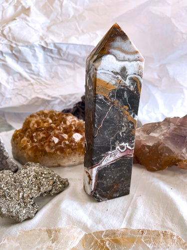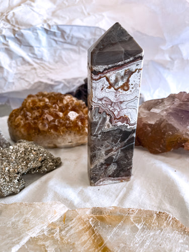 Crystal Towers are made from authentic stones. These are sanded and polished down to reveal beautiful edges on a freestanding crystal.